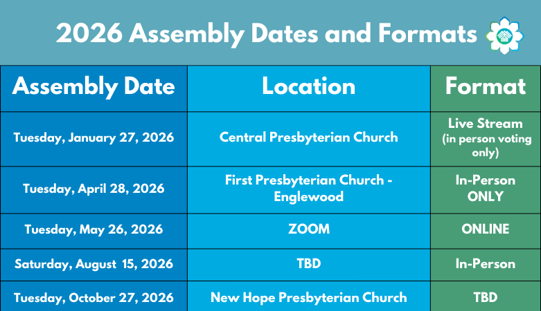 If you are a new ruling elder commissioner, elected by your session or just want to learn more, click here for information to understand Assembly Meetings.